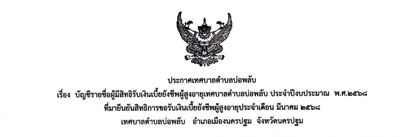 - #ประชาสัมพันธ์ ประกาศเทศบาลตำบลบ่อพลับ , 26 มีนาคม 2568