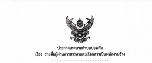 ประกาศเทศบาลตำบลบ่อพลับ เรื่อง รายชื่อผู้ผ่านการสรรหาและเลือกสรรเป็นพนักงานจ้าง