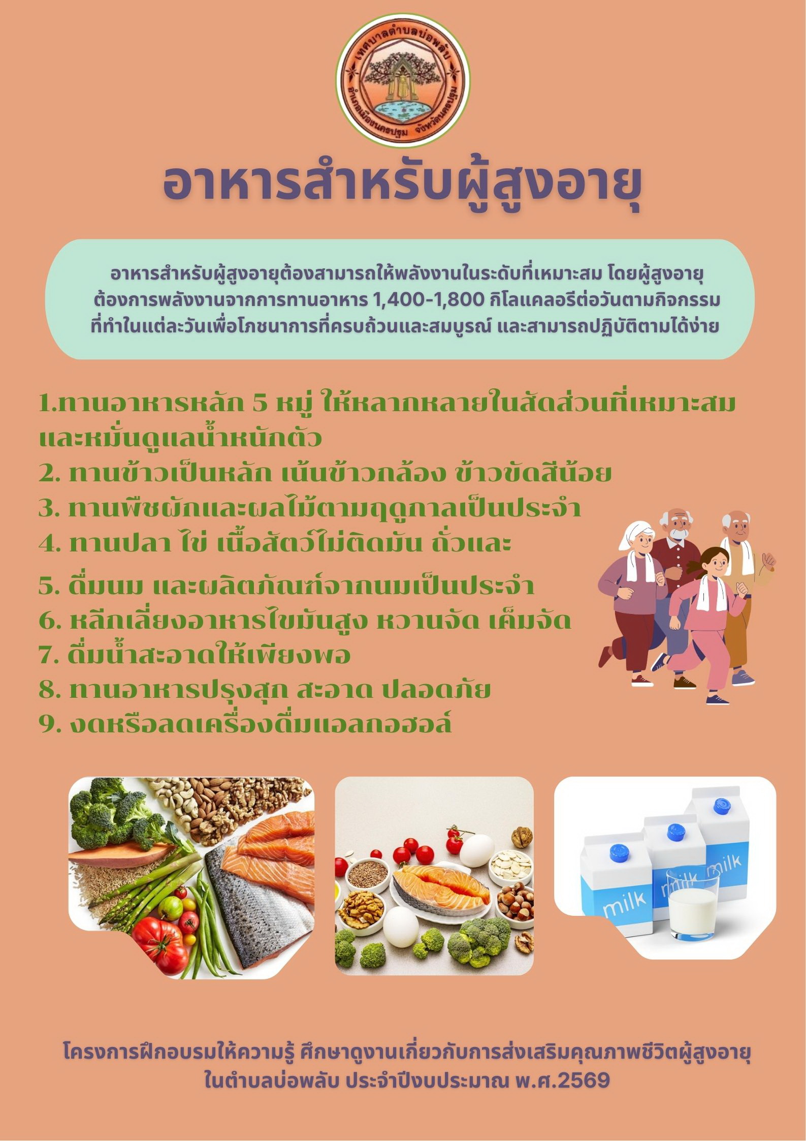- โครงการฝึกอบรมให้ความรู้ ศึกษาดูงานที่เกี่ยวกับการส่งเสริมคุณภาพชีวิตผู้สูงอายุตำบลบ่อพลับประจำปีงบประมาณ 2569กิจกรรมประชาสัมพันธ์เกี่ยวกับเรื่องการส่งเสริมคุณภาพชีวิตผู้สูงอายุ ครั้งที่ 3 , 1 เมษายน 2569
