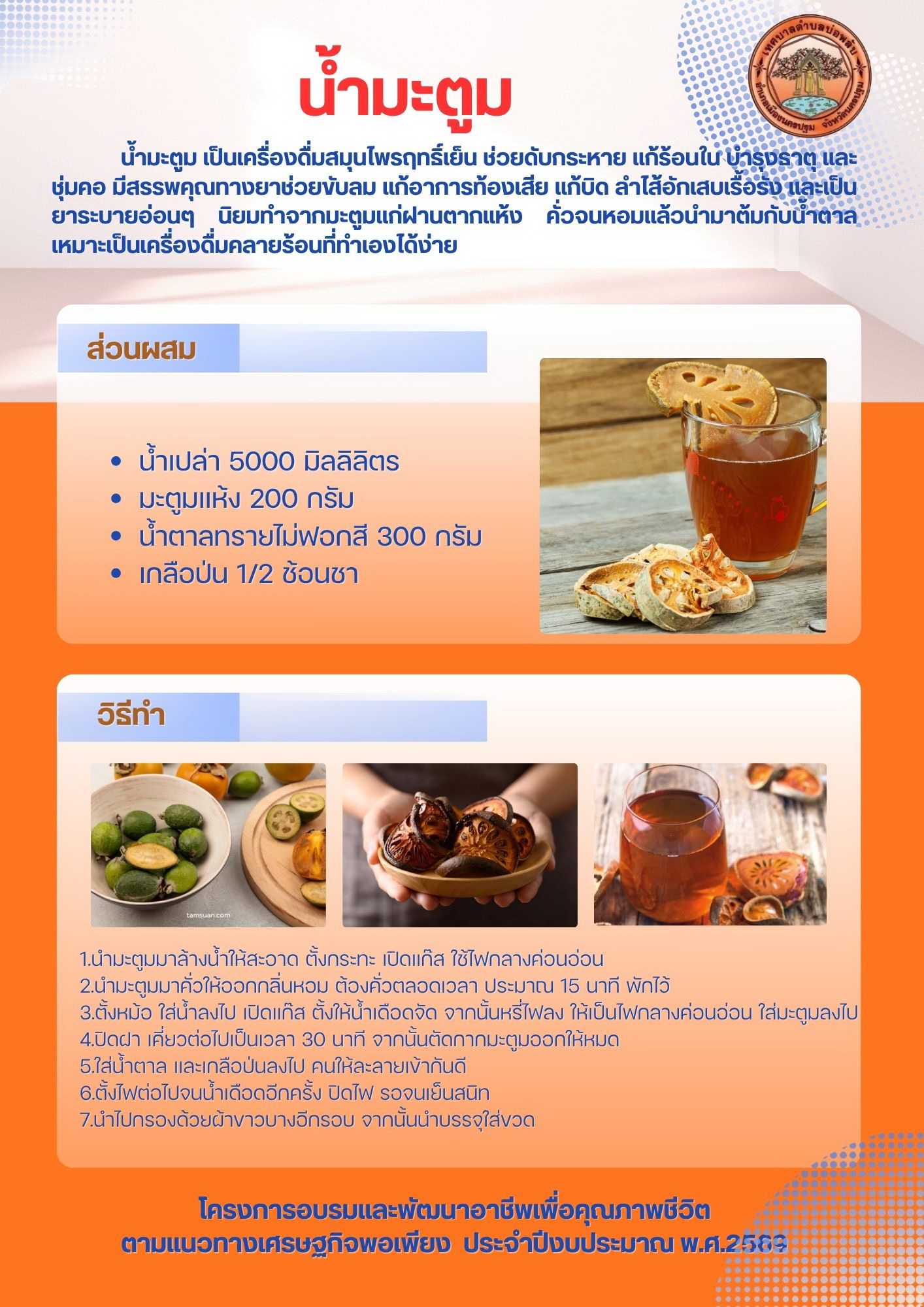 โครงการอบรมและพัฒนาอาชีพเพื่อคุณภาพชีวิตตามแนวทางเศรษฐกิจพอเพียงประจำปีงบประมาณ 2569กิจกรรมประชาสัมพันธ์เกี่ยวกับเรื่องเศรษฐกิจพอเพียง ครั้งที่ 7