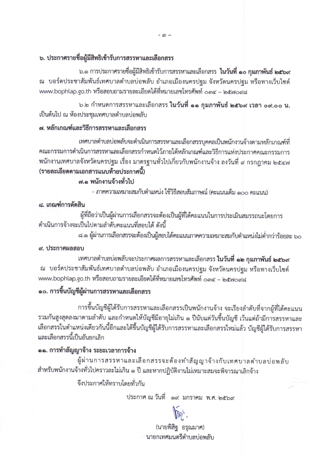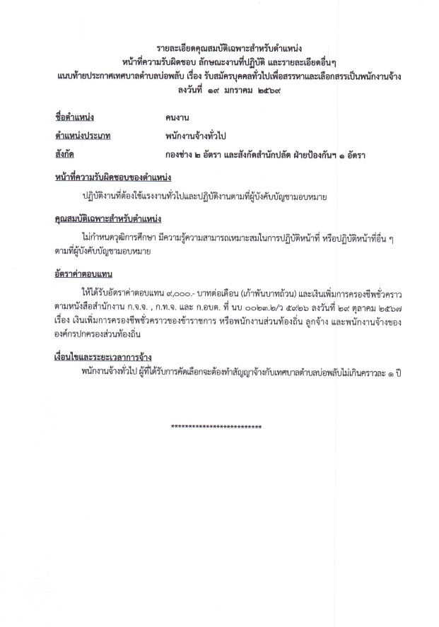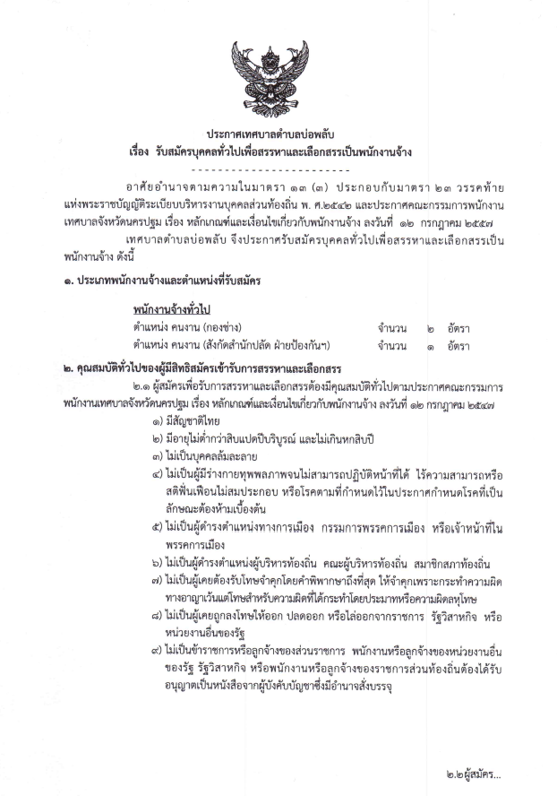 ประกาศเทศบาลตำบลบ่อพลับ เรื่องรับสมัครบุคคลทั่วไปเพื่อสรรหาและเลือกสรรเป็นพนักงานจ้าง