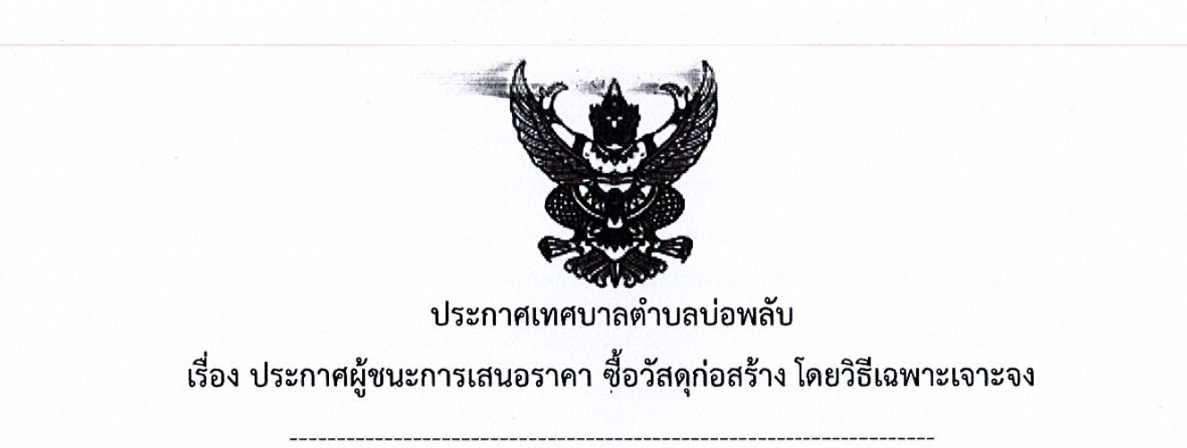 ประกาศผู้ชนะการเสนอราคา ซื้อเครื่องสูบน้ำบาดาลชนิดจุ่มใต้น้ำ (ซัมเมอร์ส) พร้อมติดตั้ง งานกิจการประปา กองช่าง โดยวิธีเฉพาะเจาะจง