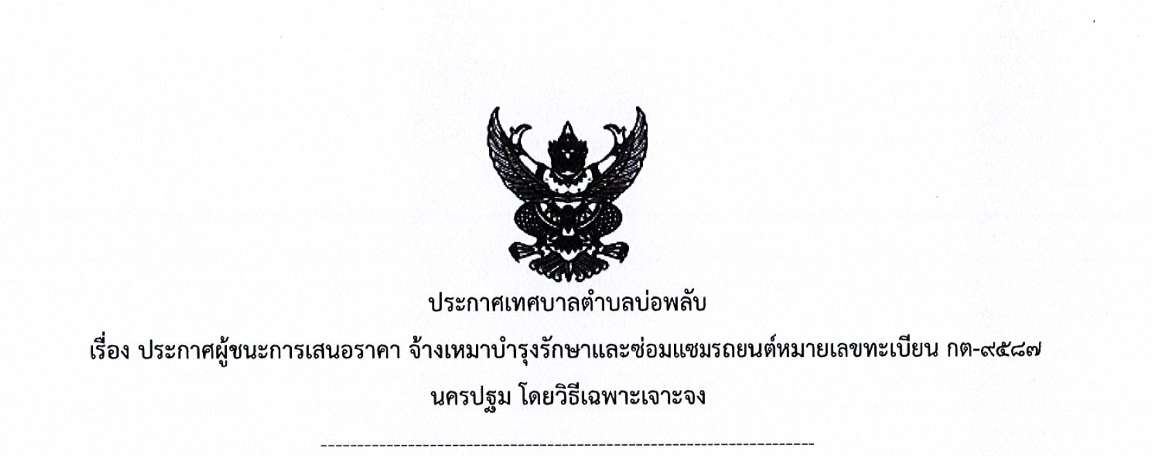 ประกาศผู้ชนะการเสนอราคาจ้างเหมาไฟฟ้าแสงสว่าง ดำเนิการตั้งจุดบริการประชาชน การป้องกันและลดอุบัติเหตุทางถนนช่วงเทศกาลสงกรานต์ พ.ศ. 2569 โดยวิธีเฉพาะเจาะจง