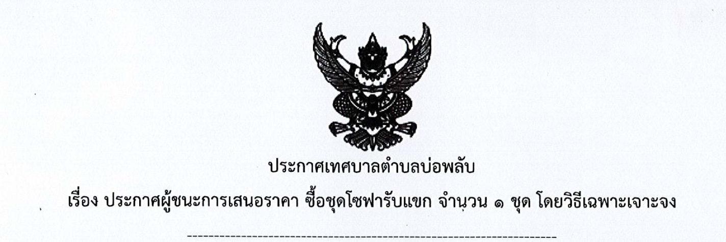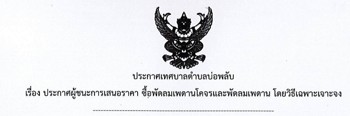 ประกาศผู้ชนะการเสนอราคา จ้างบริการคนงานประจำรถบรรทุกขยะมูลฝอย ทำหน้าที่จัดเก็บขยะในเขตพื้นที่ตำบลบ่อพลับ โดยวิธีเฉพาะเจาะจง