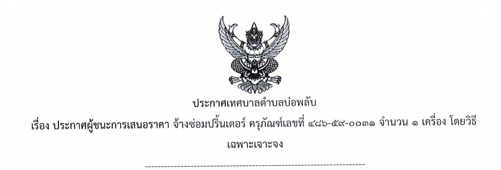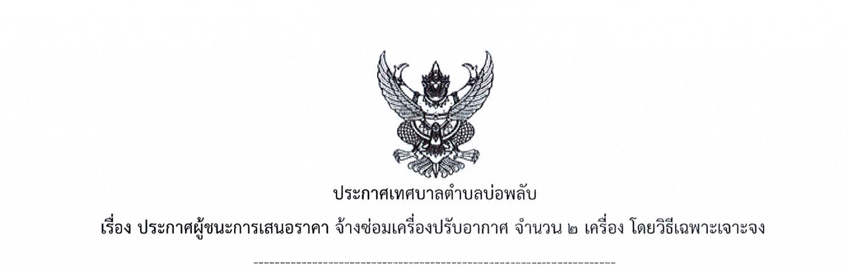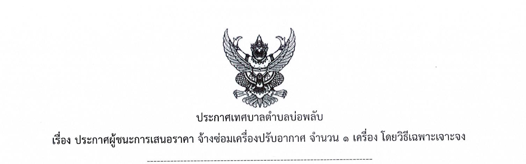 ประกาศผู้ชนะการเสนอราคา จ้างบำรุงรักษาและซ่อมแซมเครื่องปรับอากาศ หมายเลขครุภัณฑ์ ๔๒๐-๕๒-๐๐๑๙ จำนวน ๑ เครื่องโดยวิธีเฉพาะเจาะจง